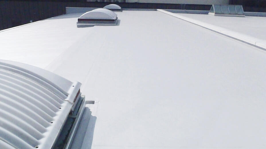 金属下地屋根用のシート固定工法であるLCS工法。既存防水層を撤去せずに「リベットルーフ」をかぶせ防水する改修法を提案し、採用に至りました。 (現場レポート28号に掲載)