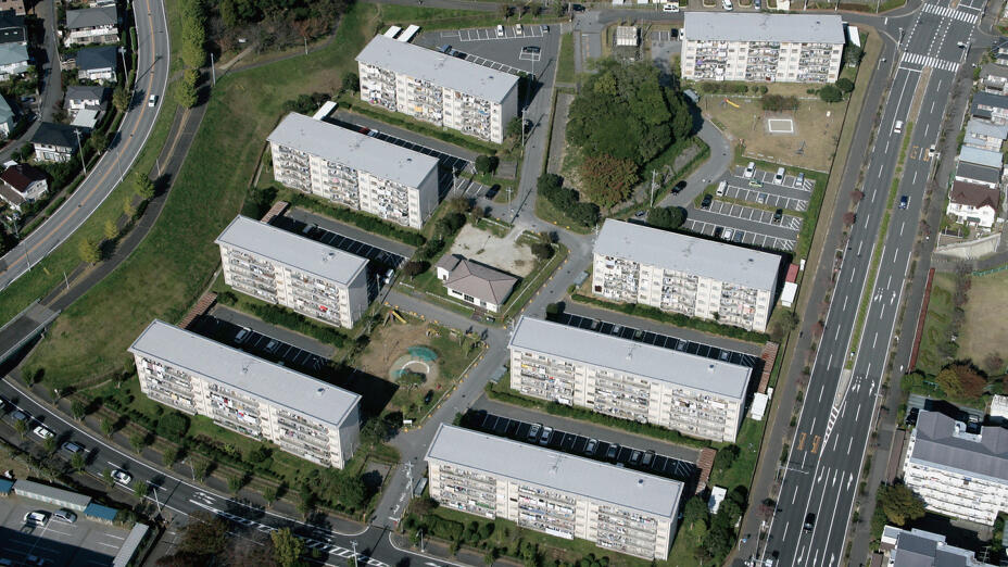 県営住宅の防水改修工事に外断熱仕様の「リベットルーフ」防水システムが導入された事例