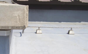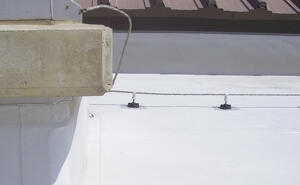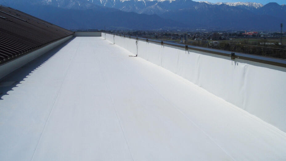 既存防水層を撤去せずに「かぶせ工法」で、太陽光高反射シート「リベットルーフCOOL」による防水改修システムが採用された事例