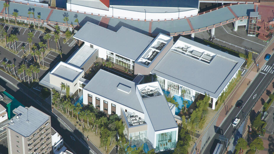 ゲストハウス型ウェディング施設である「ララシャンスHIROSHIMA迎賓館」は、広島東洋カープの本拠地「マツダスタジアム」周辺の複合総合開発「広島ボールパークタウン」プロジェクトの一角を占める注目度の高い建築物です。本事例では、金属屋根の軽量性というメリットを発揮しつつ、高断熱化を図り、環境対応型の建築を実現することが目指されました。軽量かつ耐候性に優れるリベットルーフ防水が、これらのニーズを満たす物と評価されています。 (現場レポート29号に掲載)