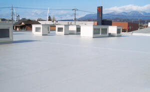 既存折板では、降雪後の融雪水の影響によってオーバーフローによる漏水が生じていました。そこでメンブレン防水での断熱改修で、折板の小口を塞ぐことを提案。漏水の心配がなくなり、高い評価をいただきました。 (現場レポート29号に掲載)