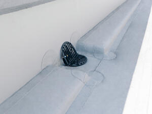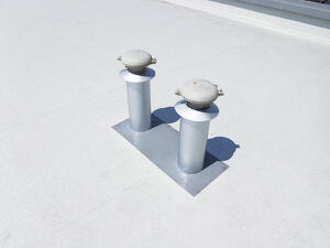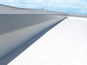 本事例では、空調負荷の軽減など、室内環境の改善に貢献できる点が評価され、「リベットルーフCOOL」が採用されました。基礎廻り、臭気筒廻り、階段などの段差部など、集合住宅の屋上において「的確な納まり」が要求される部位が多数あり、これらに対して合理的かつ確実な防水層が構築できる点も評価されました。 (現場レポート30号に掲載)