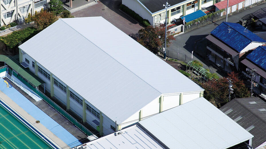 塗装の塗り替えによる改修では、下地の精度によって塗装の剥がれが発生し、繰り返しの補修を要するなどの課題がありました。「リベットルーフSW」を用いたLCS-R工法による防水改修によって、塗装の塗り替えが不要となり、長期的に防水層を維持でき、建物のライフサイクルコストを低減できる点が評価されました。 (現場レポート30号に掲載)