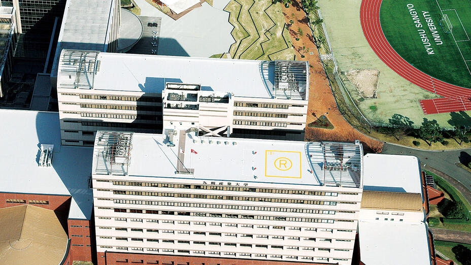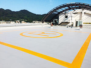 大学校舎屋上をリベットルーフ防水で改修後、ヘリサインの施工がなされた事例です。 上空からの視認性が高く、防水層完成後に導入しやすいという点が評価されました。 (現場レポート30号に掲載)