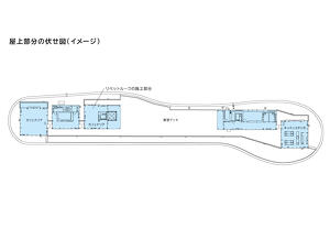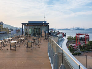 「みなと交流センター」は京都駅ビルなどを手がけた建築家・原広司氏による設計で、「黒船」のような外観が特徴です。4階部分にはカフェテリアなどが配されており、そこにリベットルーフLCS工法による防水システムが採用されました。シンプルかつ軽量なシステムが、建築物の造形に寄与した事例です。 (現場レポート31号に掲載)