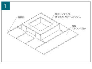既存ステレンス防水のハゼに断熱材を敷設。フラットにすることでシート防水を実現した事例。