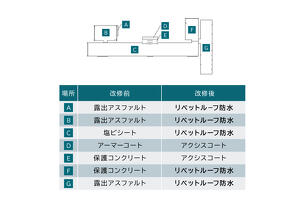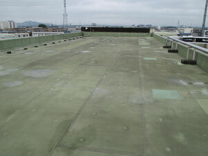 各屋根ごとに既存防水層の種類が異なっている物件を、「リベットルーフ防水システム」と「アクシスコート」を使用して全面改修を行いました。リベットルーフ防水のアンカー固定工法では、下地処理などの必要な工程が少ないため、工期の短縮が可能です。また、シート防水は単層のため、軽量でありながらも耐候性や耐久性に優れており、仕上げ塗料が不要な点も工期短縮に貢献しています。 (現場レポート31号に掲載)