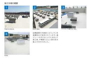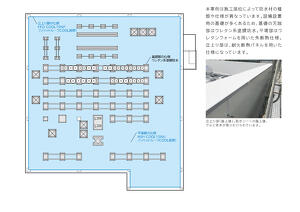 | 仕様・規模 | 【平場】アンカー固定断熱工法 MIH-COOL15NU:326.2㎡ 【立上り】NPシステム FFD-COOL15NP:569㎡ |