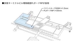 空港ターミナルビル増築工事に 「FLボードNP」が採用された事例。