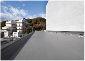 日本建築学会賞(作品賞)をはじめ、数多くの受賞歴を誇るヨコミゾ マコト氏の設計。寒冷地であり、しかも海岸からほど近いという過酷 なエリアに立地する本事例で、「リベットルーフ」の耐候性と耐久性 が認められ採用に至りました。デッキプレート部分はLCSアンカー 固定断熱工法、RC部分はアンカー固定工法で施工されています。 (現場レポート32号に掲載)