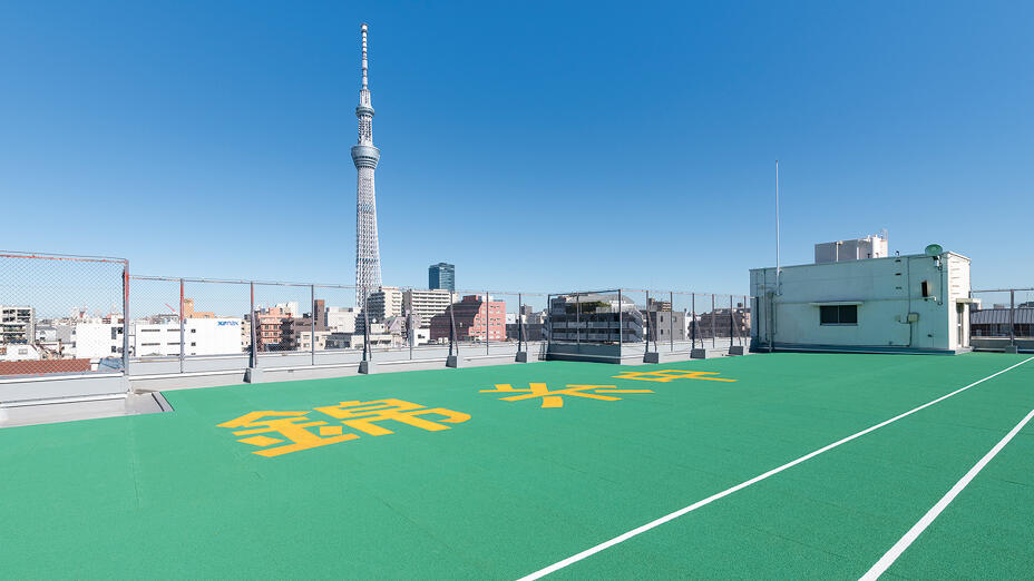 “屋上を安全な校庭に”リベットルーフと クッションマットの防水改修で実現。
