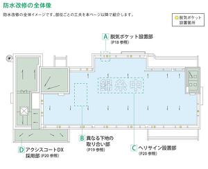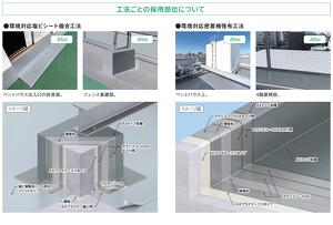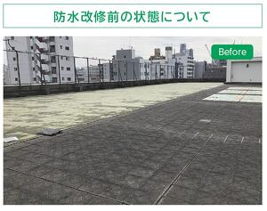 東京23区内の学校は、プールや校庭を設けるなど、屋上の多用途利用が活発です。本事例の校舎屋上も校庭の一部として活用されており、劣化が進んでいました。そこで、安全に使い続けられるように適切な下地処理を行った後、かぶせ工法で「リベットルーフ防水システム」を施工。さらに、弾性保護仕上げ材「クッションマット」を施工して、利用者の安全性向上を図りました。さまざまな工夫を施し、防水改修で“屋上を第2の校庭”として使い続けたいというニーズに応えた事例です。 (現場レポート33号に掲載)