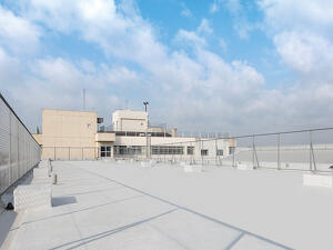 本事例は、アスファルト防水保護コンクリート仕様がゴムシート防水で改修されていた現場でした。今回、保護コンクリートに含まれる湿気を排出させたいというニーズがありました。そこでエアードライシステムの強制換気によって、ニーズを満たす方策がとられました。施工にあたっては、既存ゴムシート防水を一部撤去し的確に湿気排出ができるように配慮されています。 (現場レポート33号に掲載)