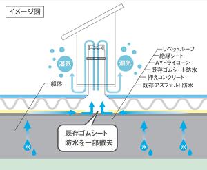 既存保護層の湿気除去にエアードライシステムが寄与した事例。
