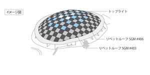 全天候型遊技施設「キッズドーム ソライ」にリベットルーフが採用されました。屋根には多数のトップライトが備えられており、外の光をふんだんに取込む事ができます。この屋根に、2色のリベットルーフを市松模様のように敷設する事で、トップライトが柄の一部となり、屋根デザインのディティールアップに貢献しました。 (現場レポート33号に掲載)