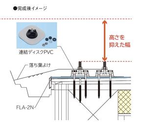 落ち葉よけを設置しつつ、建物のエッジラインを際立たせたいという要望がありました。そのニーズに対して、「連結ディスクPVC」を活用して、パラペットレスで落ち葉よけの設置を実現。リベットルーフが建物デザインに貢献した事例です。 (現場レポート34号に掲載)