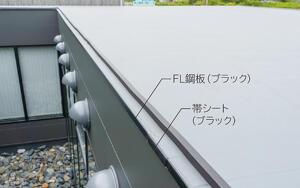 本事例は全体的に黒色でまとめられた意匠が特徴です。そのため防水の意匠においても黒色が求められました。リベットルーフ防水システムでは、ブラックカラータイプの副資材をラインアップしています。意匠面においてもニーズを満たせる点が評価され、採用にいたりました。 (現場レポート36号掲載)