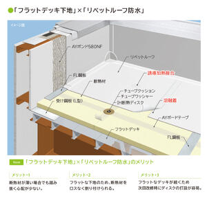 施工性が高く、踏み抜き事故が少ない「フラットデッキ下地」×「リベットルーフ防水」。