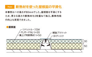 当初は、塗装の塗り替えで対応することが想定されていました。しかし、瓦棒のゆるみや錆びによる穴あきの懸念があり、リベットルーフ防水での改修を提案し、採用されました。前述の懸念を払拭でき、シームレスな防水層が構築できる点が評価された事例です。 (現場レポート36号掲載)
