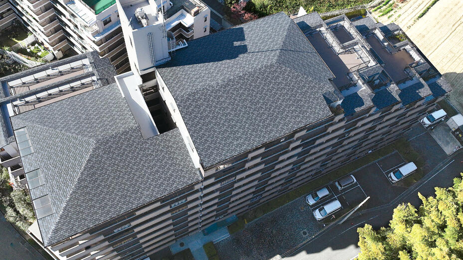 勾配屋根専用防水シート「リベットルーフART」で大型マンションの防水改修をした事例。