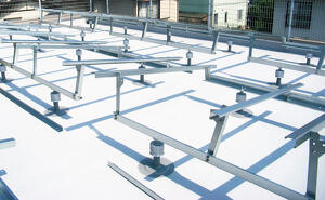 漏水によって屋上の防水改修計画が求められていました。一方、太陽光発電の導入も検討されているという状態でした。そこで、防水改修と太陽光モジュール設置がスムーズに一連として行える点が評価され、太陽光モジュール固定システム「エネブリッド」が採用されました。希望ワット数と設置面積を考慮してグリッドベースMの2段6列設置となりました。 (現場レポート29号に掲載)