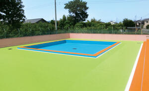 | 仕様・規模 | プール本体部分:アンカー固定工法 M-PG15 約740m2 プールサイド:アンカー固定工法 M-YMX 約460m2 |