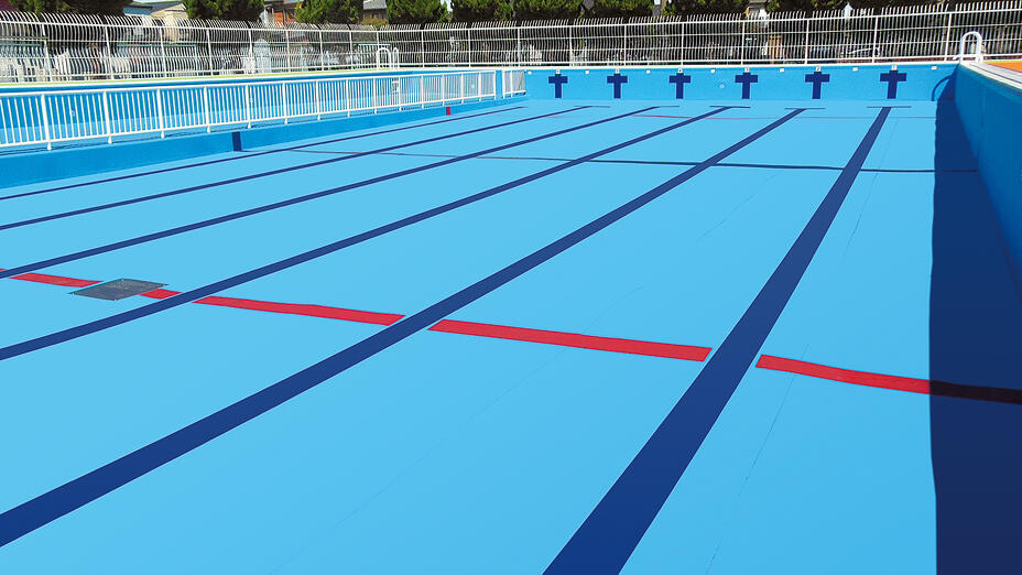 施工後の美しさ、下地処理の負担経験を図れるシステムである点が評価された金属製プールの防水改修事例