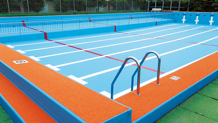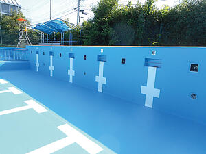 塗装の頻繁な塗り替えが不要となる点が評価されたコンクリート製プールの防水改修