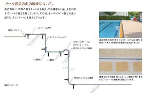 プール缶体は、塗装が剥がれており、プールサイドのブロックは浮きや割れが生じるなど、危険な状態となっていました。本事例では、プール防水システム「アクアキューブ」で安全に利用できるプールへと改修しています。 (現場レポート35号に掲載)