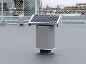 経年劣化による既存防水層の損傷で、コンクリート躯体に水分が含まれていました。本事例では、躯体から水分を取り除くためにリベットルーフ「エアードライシステム」が採用されています。 (現場レポート35号に掲載)