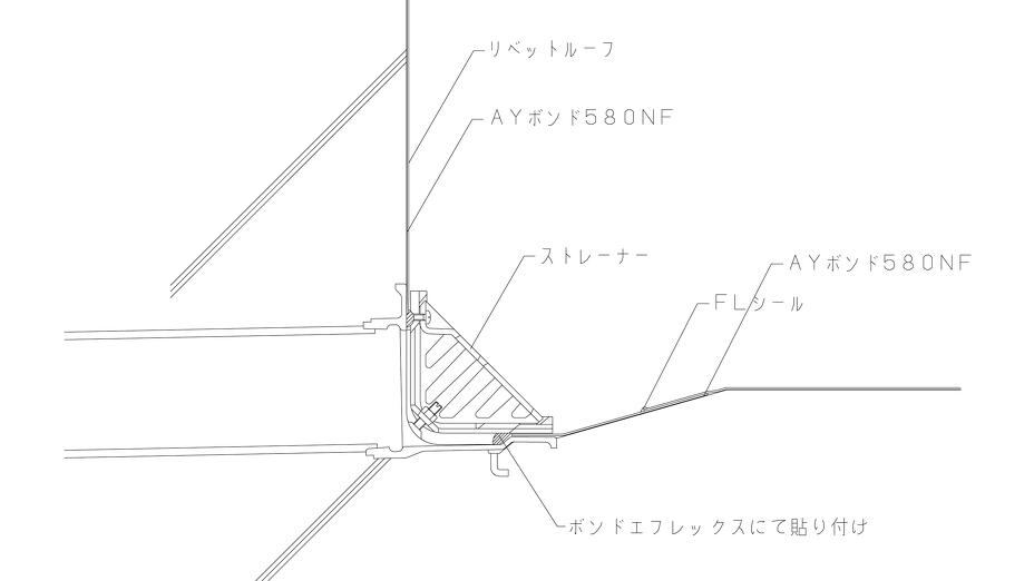 横型ドレン新築納まりの例 種別 : JWWファイル download DWGファイル download PDFファイル download カタログ 総合カタログ : 134 リベットルーフカタログ : 58