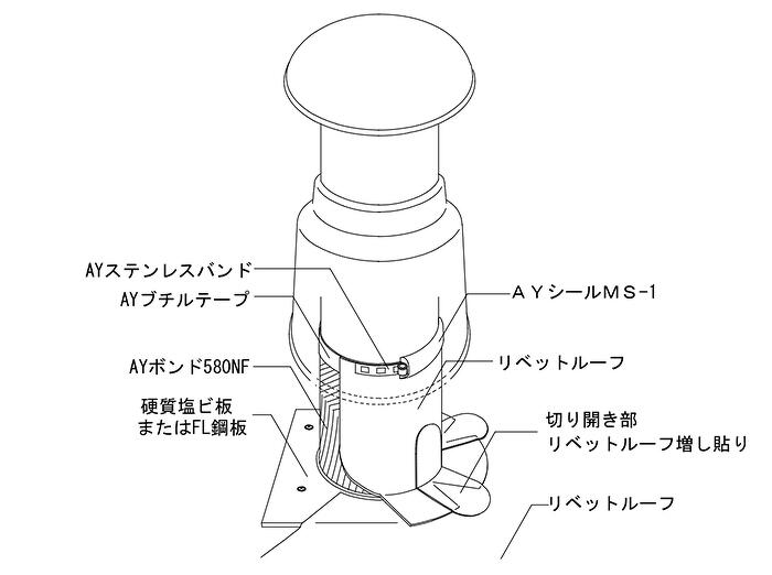 臭気筒廻り納まりイメージ 種別 : JWWファイル download DWGファイル download PDFファイル download カタログ 総合カタログ : 136 リベットルーフカタログ : 59