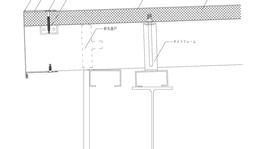 折板の改修 軒先部納まりの例 種別 : JWWファイル download DWGファイル download PDFファイル download カタログ 総合カタログ : 140 リベットルーフカタログ : 63