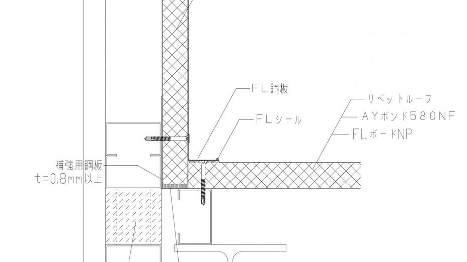 NPシステム入隅部納まりイメージ1 種別 : JWWファイル download DWGファイル download PDFファイル download カタログ 総合カタログ : 141 リベットルーフカタログ : 65