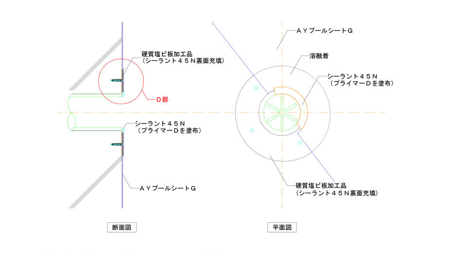 循環フランジ部納まり例1 種別 : JWWファイル download DWGファイル download PDFファイル download カタログ 総合カタログ : 144 アクアキューブカタログ : 22