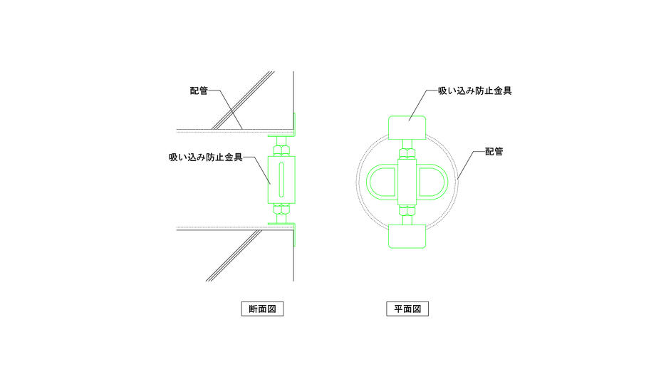 吸い込み防止金具納まりの例 種別 : JWWファイル download DWGファイル download PDFファイル download カタログ 総合カタログ : 145 アクアキューブカタログ : 24