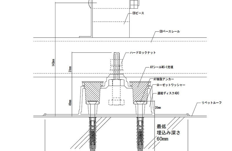 EBベースレール仕様例(AY樹脂アンカー使用時) 種別 : JWWファイル download DWGファイル download PDFファイル download カタログ 連結ディスクADCカタログ : 13 総合カタログ : 146