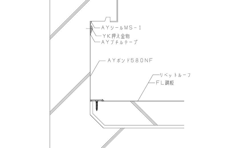 立上り部だけ、既存防水層を撤去して接着工法で納める場合の参考例 種別 : JWWファイル download DWGファイル download PDFファイル download カタログ リベットルーフ防水改修カタログ : 25