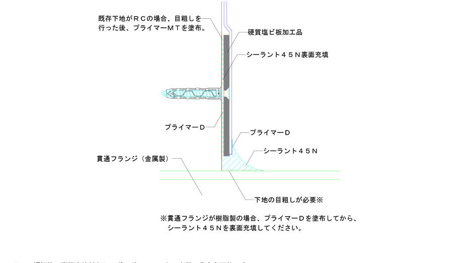金属製貫通フランジ納まり例 拡大図 種別 : JWWファイル download DWGファイル download PDFファイル download カタログ 総合カタログ : 144 アクアキューブカタログ : 22