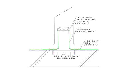 立上り部だけ、既存防水層を撤去して接着工法で納める場合の参考例