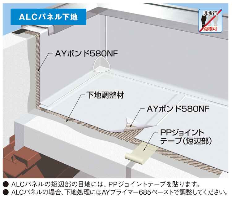 ALC下地の場合、シートの厚さいかんに関わらず、歩行用途は「非歩行(点検可)仕様」となります。