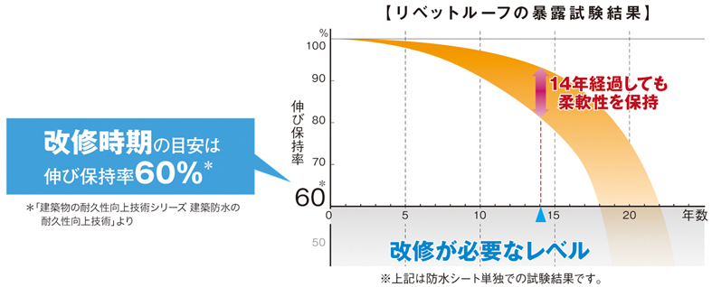 「リベットルーフ」防水シートは耐候性、耐久性に優れており、